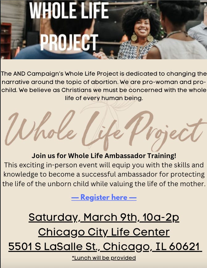 In three weeks, And Campaign Chicago will host a Whole Life Ambassador training at the Chicago City Life Center. To learn more about And Campaign’s Whole Life Project, visit our Whole Life Project page.